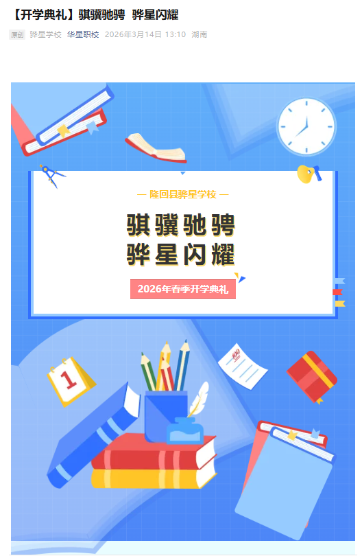 春暖骅星,万象更新。3月11日,隆回县骅星学校全体师生隆重举行2026年春季开学典礼,全校52个班级、2306名学生、187名教职员工齐聚校园,共同参加开学典礼。