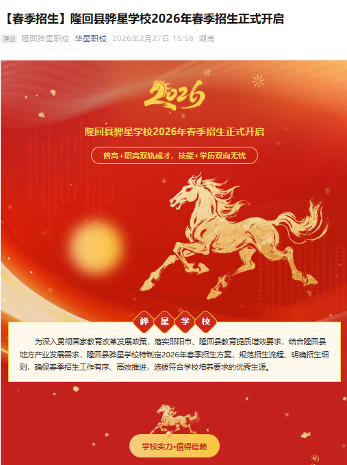 【春季招生】隆回县骅星学校2026年春季招生正式开启